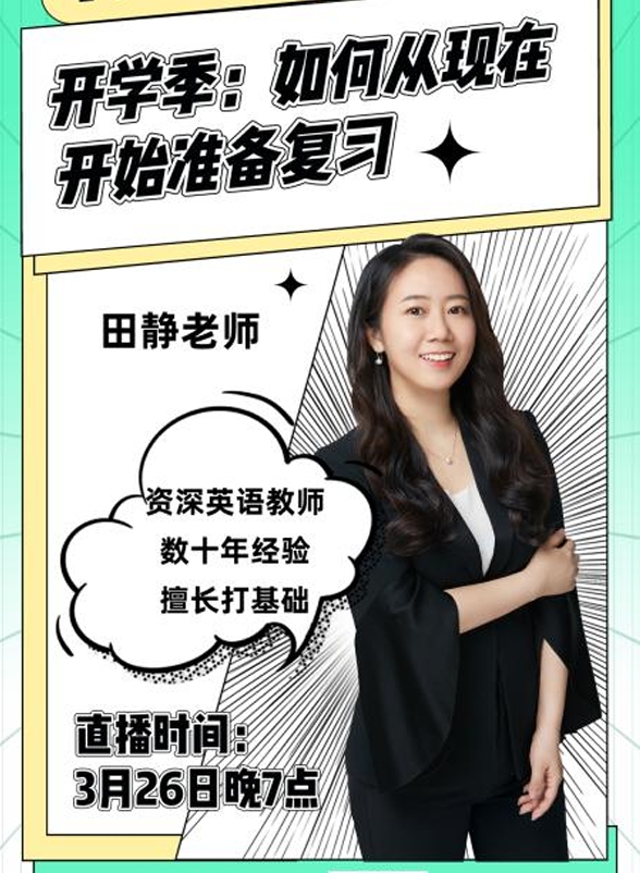 一、讲座时间:3月26日19:00~20:30二、主讲嘉宾:田静三、嘉宾介绍:主讲科目:语法、阅读,翻译、写作辅导资历:考研英语界资深教学培训师和英语讲师,拥有十余年的教师培训经验和英语教学经验主讲过国内外多种考试类英语,尤其擅长帮助学生打好基础,取得高分。教学方法:在考研英语语法讲解中独创全新语法体系,化繁为简、层层递进,帮助同学们从零基础直达考研成功上岸。四、主讲内容:25 考研英语复习规划五